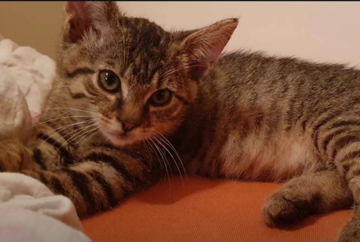 Il giorno seguente hanno provato a dargli un’altra flebo e continuato ad alimentarlo con la siringa. Secondo il veterinario la testa gli rimarrà inclinata visto che non si può raddrizzare. Probabilmente i corvi gli hanno danneggiato qualcosa nel suo cervello, causando anche il danno al polmone e i problemi motori. Fortunatamente, il gattino ha poi iniziato a mangiare da solo, dimostrando forza e voglia di vivere. Il terzo giorno dal veterinario, gli ha ha fatto una terza flebo, nella speranza sia l’ultima. Il quinto giorno di cure, il piccolo Max stava decisamente meglio, aveva appetito e aveva voglia di combattere e giocare.