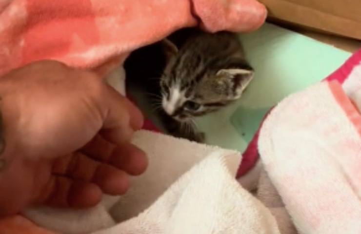 L’utente @justinerountree ha mostrato ai suoi follower come è riuscito a salvare la vita – in bilico – di un gattino rimasto intrappolato all’interno di una pozzanghera. Il tutto si è verificato, nel tempo di pochi minuti, dopo una violenta precipitazione. “Ho assistito ad una tremenda tempesta“, ha informato il ragazzo in sovrimpressione alla clip che svela le dinamiche sul recupero del gattino in pericolo di vita. Il giovane ha raccontato di come, mentre stava per lasciare il suo posto di lavoro, ha avvertito il lamento del piccolo micio, per poi scoprire della sua presenza all’interno di una pozzanghera parzialmente nascosta da una lastra di metallo.