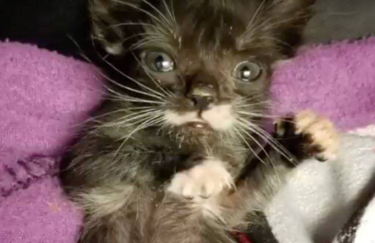 Il gattino è piccolo a tal punto che entra in un cucchiaio: lo specialista si accorge della sua particolarità ma lui è forte come un leone.