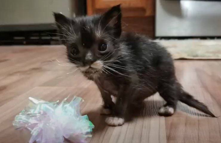 Così piccolo che entra in un cucchiaio, ma il gattino è forte come un leone