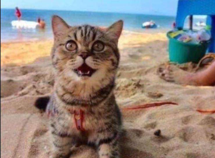 Giunto sulla spiaggia, il micio è subito apparso super felice. Chi si trovava nelle sue vicinanze ha raccontato della gioia che quel gattino trasmetteva. I suoi occhioni increduli ed i suoi sorrisoni erano davvero contagiosi. Il pelosetto è rimasto tutto il tempo vicino alla sua famiglia, scavando nella sabbia, oziando sulla sdraio e godendo della brezza marina che quel giorno era piacevolissima.