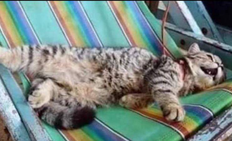 Gattino va in spiaggia per la prima volta: relax sulla sdraio