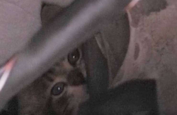 Un gattino appena salvato dalla strada resta intrappolato all’intento del cruscotto della sua autovettura: il video mostra quando accaduto.