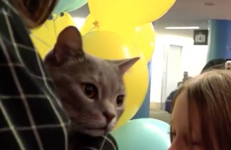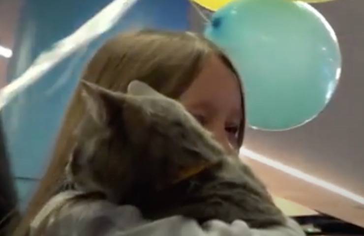 Il momento dell’attesissimo incontro tra Agnessa e Arsenii, finalmente riunitisi tra “lacrime e sorrisi” – come riporta infine l’emittente statunitense nel servizio ad essi interamente dedicato, è stato immortalato all’interno dell’aeroporto della città. La bimba e il suo micio si abbracciano commossi tra i palloncini colorati, che sembrano dare nuovamente inizio alle loro indimenticabili sessioni di gioco.