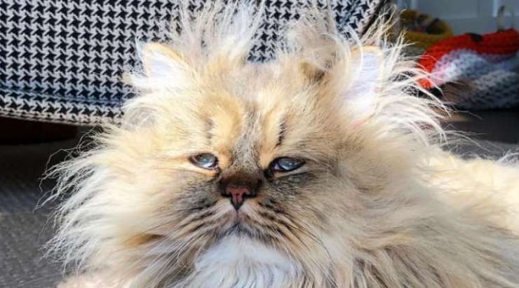 Ha quattro anni ed è un bellissimo gatto persiano. E’ paffuto, simpatico e ispira simpatia al primo sguardo. Fin qui, nulla di strano.. ma basta guardarlo per rendersi conto che c’è una caratteristica che non passa inosservata. Il bel gattone sembra avere l’aspetto di una persona che non ha dormito bene o poco. Ad incorniciare il volto, due occhi particolarmente pittoreschi che che rivelano un insieme di stati d’animo. Questi possono essere vari e si riflettono nel volto del micio che appare annoiato, pensieroso e malinconico. A quanto pare, non servono le 20 ore al giorno di lunghe dormite, perché il felino risulta essere quasi sempre annoiato e infastidito come se avesse bisogno di dormire per un altro pò di tempo. Come tutti i gatti, ama le coccole, ed è un esemplare davvero adorabile. Il suo carattere è un pò bizzarro ma ciò non gli toglie l’affetto della sua famiglia e di tutte le persone che hanno la fortuna di conoscerlo.