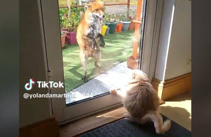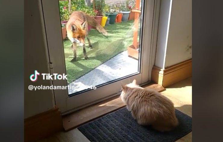 Il video che sta facendo il giro del web e che in poche ore è diventato molto popolare su TikTok, vede come protagonisti un gatto e una volpe. La clip è stata ripresa e pubblicata dall’utente @yolandamartinez2946 e mostra il suo gatto arancione seduto in agguato davanti alla porta che tiene attentamente d’occhio quello che sta succedendo fuori dalla porta di casa.