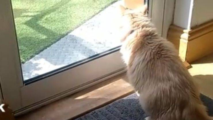 Apparentemente sembra che il gatto stesse proprio facendo la guardia di casa ad una volpe arrivata in giardino e, come ogni animale curioso, si stava avvicinando troppo alla porta di casa. All’inizio la volpe fissa il gatto e si avvicina lentamente, con cautela al vetro che la separa dal gatto. Tuttavia il felino non ci ha pensato due volte a reagire e ha ristabilito l’ordine spaventando la volpe curiosa, facendola scappare.