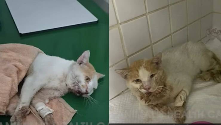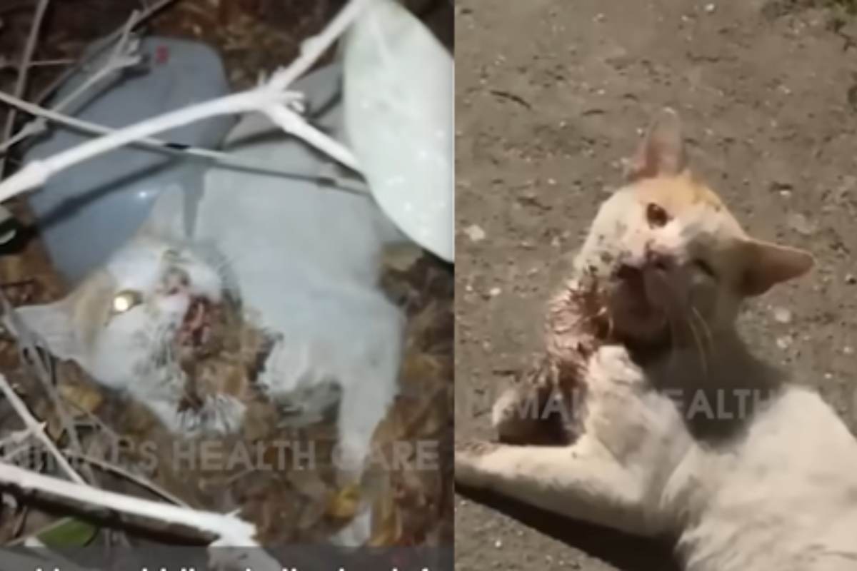 Purtroppo ogni giorno vengono condivise sui social network storie che raccontano di poveri cani, gatti e altri animali sottoposti alla cattiveria umana. Maltrattati, picchiati e lasciati in strada come fossero spazzatura, questi poveri quattro zampe spesso muoiono per le ferite o riportano danni gravi. Così è accaduto a un povero gatto dal manto bianco e arancione, che è stato brutalmente malmenato riportando, per le percosse ricevute, delle fratture alle zampette e soprattutto una gravissima frattura alle ossa del muso. Maltrattato e terrorizzato, il povero gattino, impossibilitato a bere e a mangiare per il muso fratturato, è rimasto nascosto per giorni tra i cespugli senza più alcuna speranza di sopravvivenza.