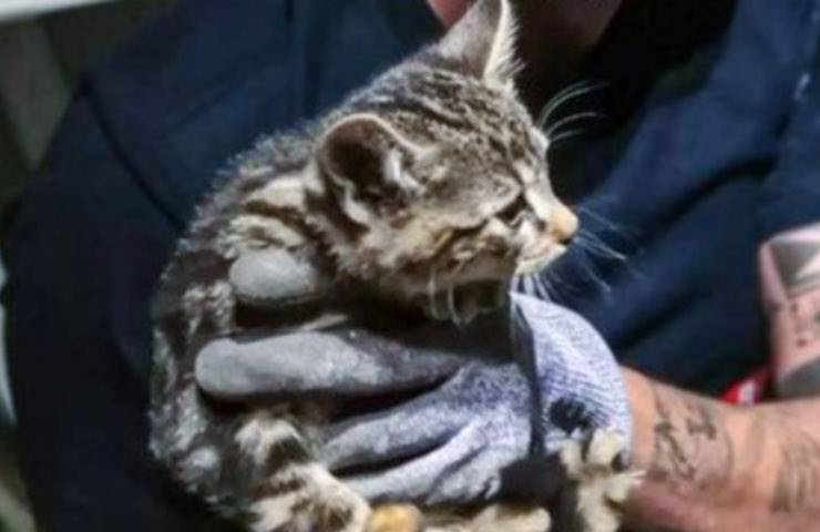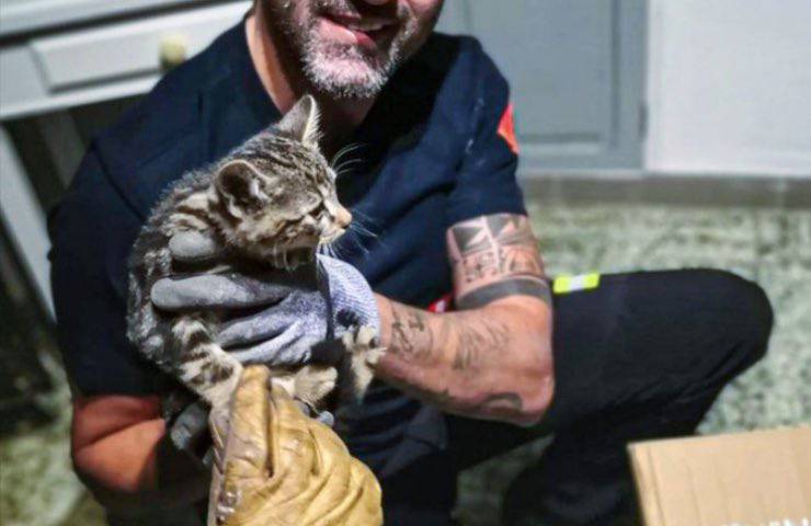 Il gatto è precipitato nel camino di una piccola città del nord e il suo salvataggio avrebbe richiesto tanta pazienza da parte dei componenti delle Fiamme Rosse accorse sul posto per fornire pratico aiuto al minuto felino in difficoltà.