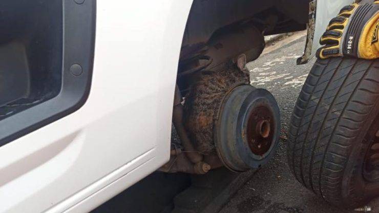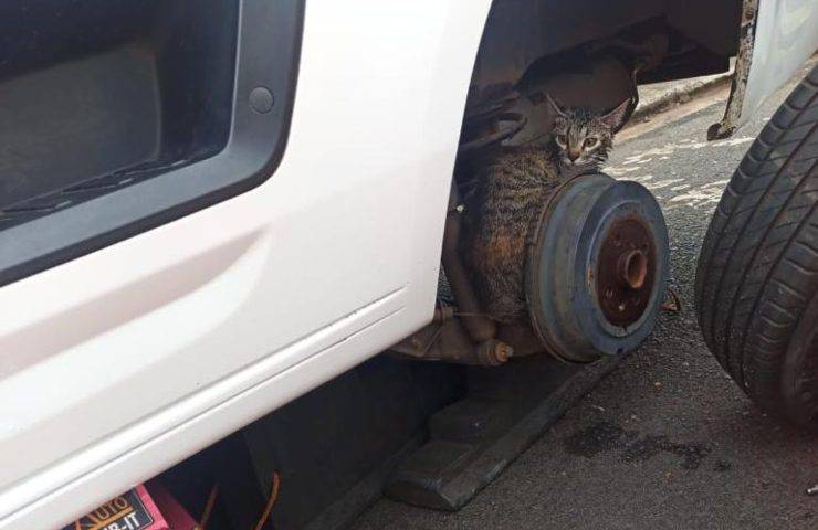 Il gatto si ritrovato incastrato nella ruota di un’auto e il salvataggio è stato fatto con molta delicatezza dai vigili del fuoco – FOTO.