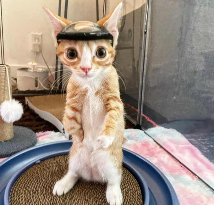 Nei giorni scorsi, la direttrice della struttura, Carolina Grace, ha pubblicato sul suo account Instagram una foto di Otter con indosso il suo casco e ha spiegato la sua storia. Il piccolo micio, infatti, è costretto ad indossarlo fino a quando non compirà un anno di età e potrà essere sottoposto all’intervento chirurgico per coprire l’area esposta. Visto la sua scarsa e traballante mobilità, il gattino sbatte contro gli oggetti quando si muove e per questo gli è stato messo un casco, per evitare di colpire gli oggetti e di farsi male.