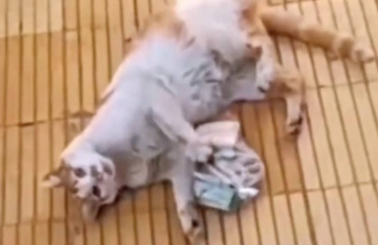 Nel frattempo, come mostra il gettonato filmato, il gatto della donna continuava a fare strani movimenti sull’uscio della porta. Probabilmente il micio era molto divertito dal rumore che le stesse banconote producevano tra le sue zampe, più che del bottino portato con sé – sulla strada del ritorno – e con cui avrebbe continuato a giocarci fino a quel momento.