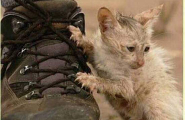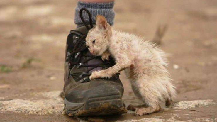 la fotografia ritrae un cucciolo di gatto dal pelo bianco che si aggrappa alla scarpa di un passante. Due uomini di Hoi An, in Vietnam, stavano passeggiando per fotografare il disastro provocato da una grande alluvione, una delle peggiori mai viste in Vietnam, ancora qualche anno fa. Mentre immortalavano immagini di distruzione, un piccolo gattino bianco si è avvicinato a uno dei due uomini per implorare aiuto.