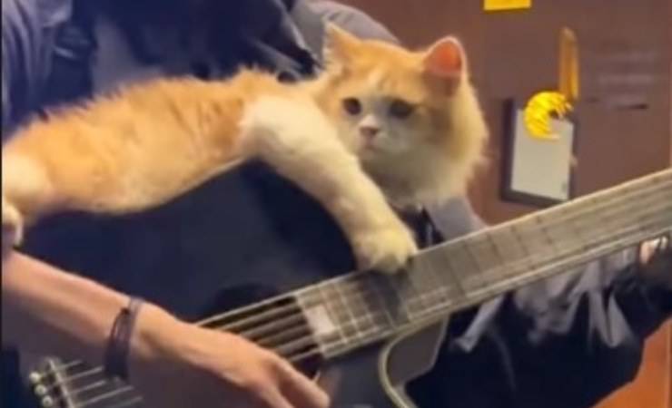 Questo gatto potrebbe diventare la prossima star della musica, il filmato dove si vede che suona la chitarra insieme al suo umano è virale – VIDEO.