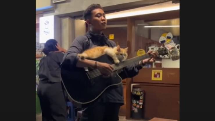 Se i gatti sanno veramente suonare rimane un mistero, tuttavia alcuni video pubblicati sui vari social dimostrano che alcuni esemplari hanno la vena musicale nel loro sangue. Un artista di strada è diventato noto tra le strade di Giacarta per esibirsi insieme al suo compagno felino, il quale gli dà una zampa strimpellando qualche accordo con la chitarra.