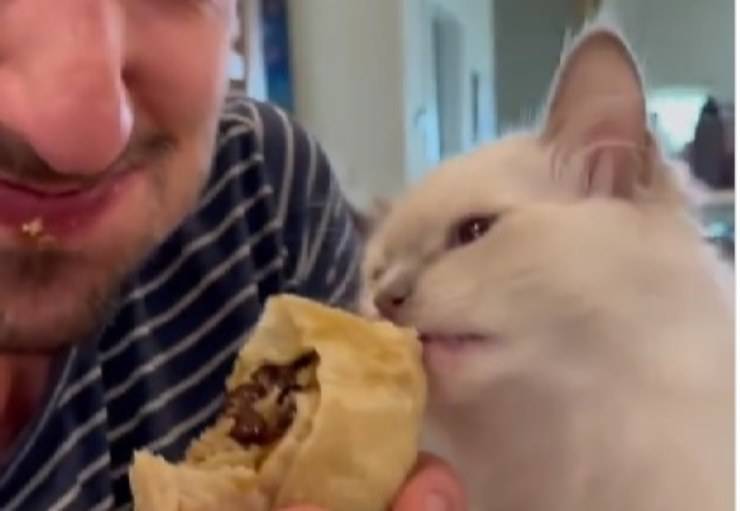 In questo video vedremo un gatto che tenta di rubare il panino al suo padrone e il tutto è troppo divertente per gli utenti dei social.