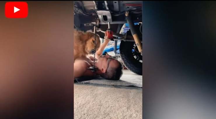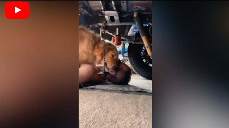 Un momento dolcissimo è stato ripresa da una telecamera posizionata sotto una vettura che un meccanico stava riparando ,il suo cane un Golden Retriever bisognoso di attenzioni compie un gesto dolcissimo nei suoi confronti.
