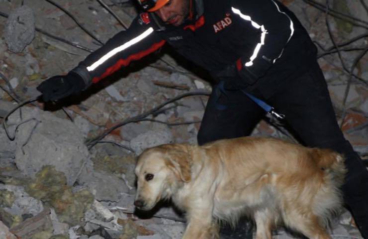 Le immagini che testimoniano il nobile lavoro svolto da Kopur – in diretta dalla città di Malatya, in Turchia – sono state pubblicate su Twitter tre giorni fa, descrivendo come il quattro zampe si sia totalmente esposto al pericolo pur di salvare la vita di coloro che erano rimasti intrappolati sotto le macerie.
