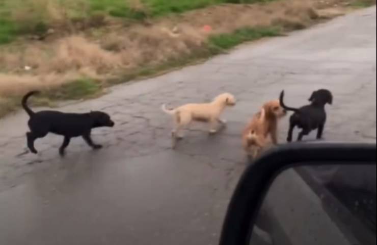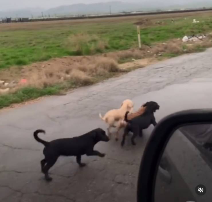 Sei cuccioli di cane abbandonati in strada in California seguono un’automobile che procede a velocità ridotta (VIDEO)