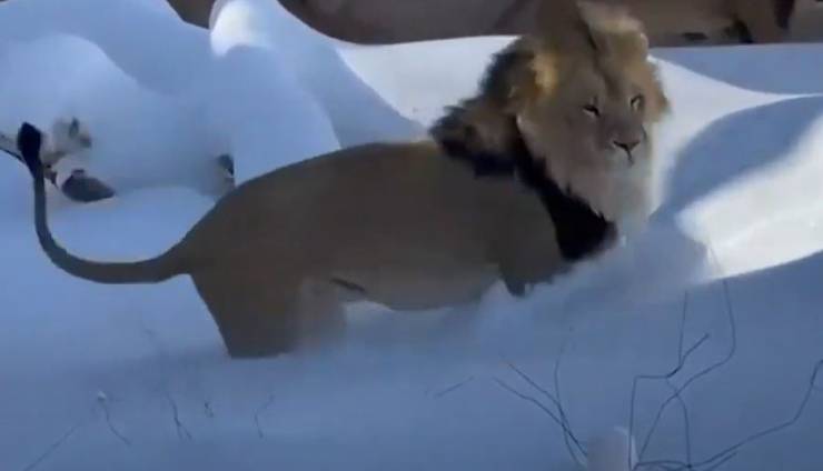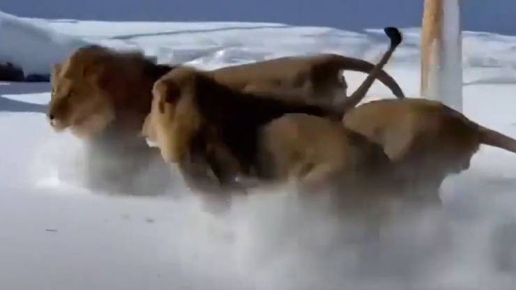 Un gruppo di leoni si diverte e gioca sulla neve mentre viene ripreso da un video in lontananza: ma sorgono delle riflessioni. La prima, su tutte, è quella rivolta verso la struttura in cui si trovano.