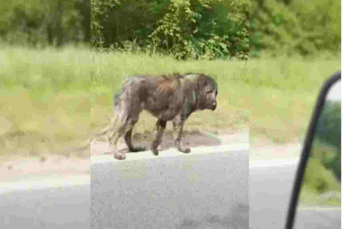 un cane randagio era visibilmente segnato dalla traumatica esperienza. Da alcuni giorni il grosso cagnolone vagava lungo un’autostrada trafficata senza che nessuno si fermasse per soccorrerlo.