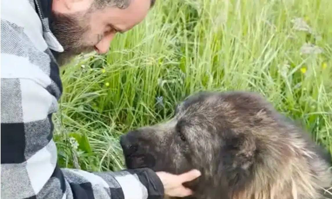 Nonostante la diffidenza del cane Bruno non si è lasciato abbattere e ha continuato imperterrito a cercare di conquistare la fiducia del grosso cagnolone, a differenza di altri che avevano ignorato l’animale l’uomo sapeva che l’unico modo per avvicinarsi sarebbe stato attendere con pazienza.