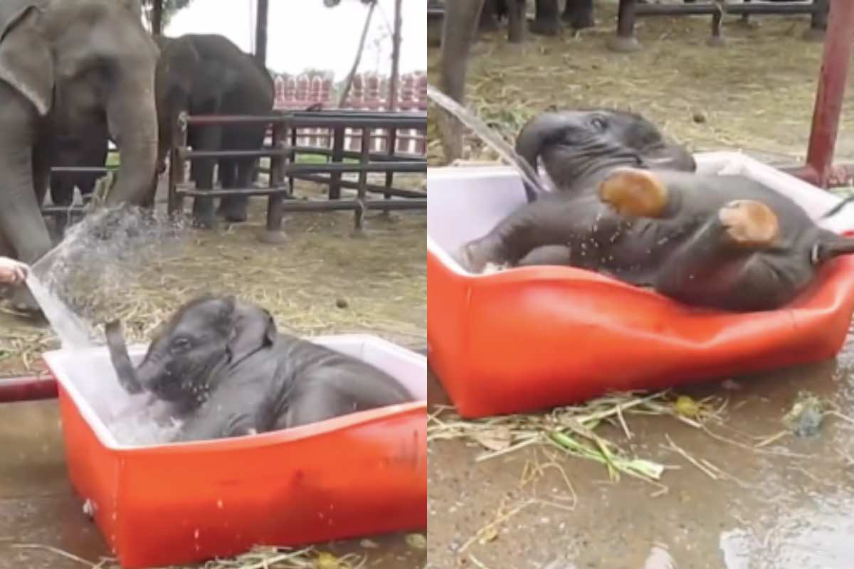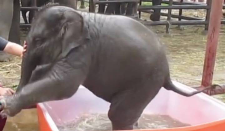 Il modo di rapportarsi con una piccola vasca piena d’acqua non è mai stato così divertente per l’elefantino immortalato in una virale clip mentre è alla prese con il suo primo bagnetto. Se questa è anche per voi la prima volta che assistete al primo bagnetto di un elefantino