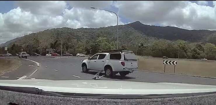 Si trovava in macchina fermo ad una rotonda la conducente di Cairns, Renee Oliver che ha assistito al volo di un cane da un pick-up cabinato bianco alla curva di una rotonda nell’estremo nord del Queensland.