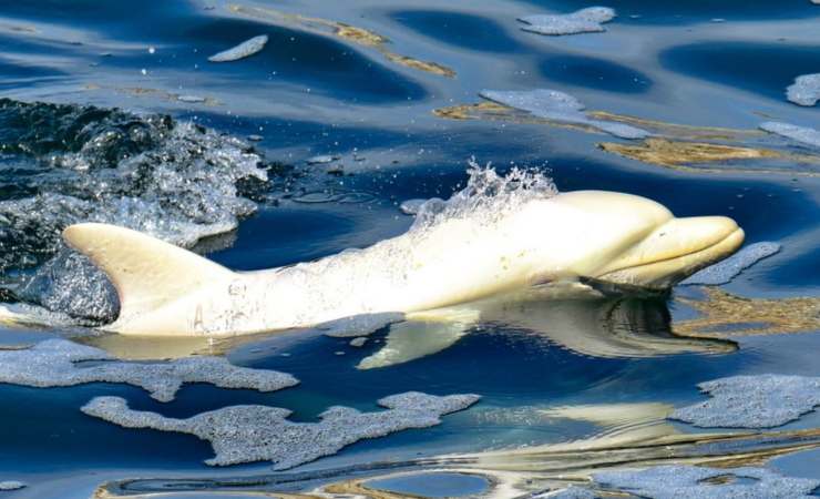 Non era mai successo di vedere in quel tratto di mare un esemplare di delfino albino. Invece, un capitano è riuscito a scorgerlo in un grande gruppo di delfini che nuotava proprio davanti alla sua barca.