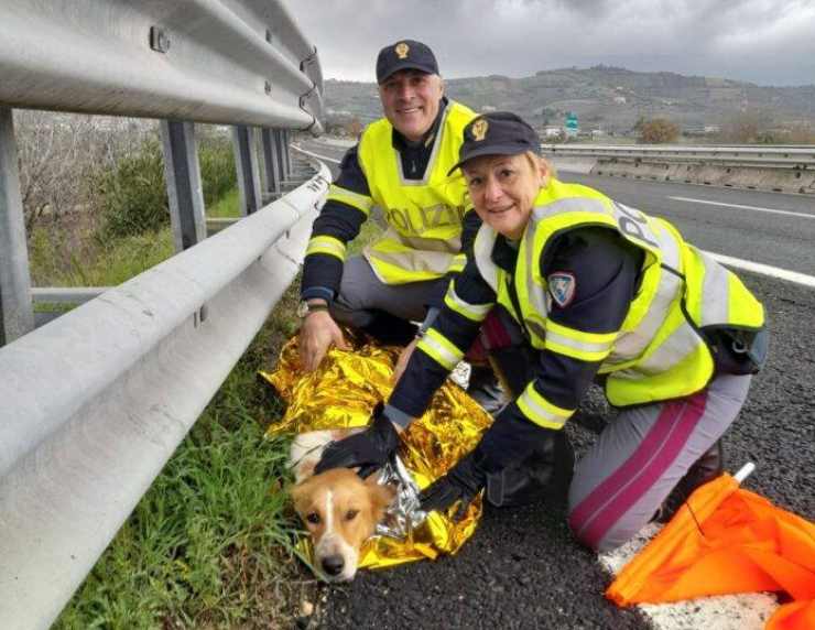 Cane viene investito in autostrada e lasciato lì dal pirata: interviene la polizia