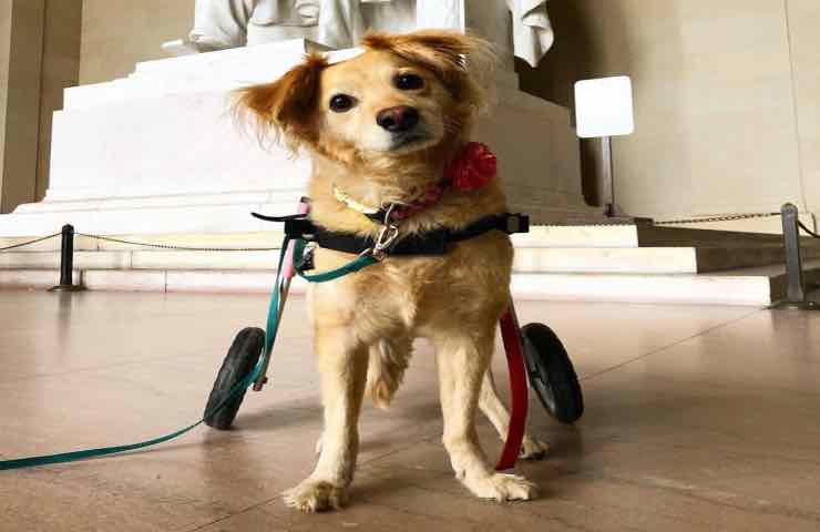 Scooty è stata la prima cagnolina che Erica ha incontrato nel 2012, l’incontro è avvenuto in un rifugio del Messico, la piccola aveva la schiena fratturata in diversi punti, oltre che i fianchi schiacciati e le costole rotte a causa del violento impatto. Le zampe posteriori inoltre erano paralizzate. Hanno cercato di riabilitarla con l’agopuntura e il laser oltre che con l’idroterapia e molto amore e fiducia. La donna non ha abbandonato il cane nemmeno per un minuto e ha capito subito che aveva bisogno di qualcuno che lo sostenesse.