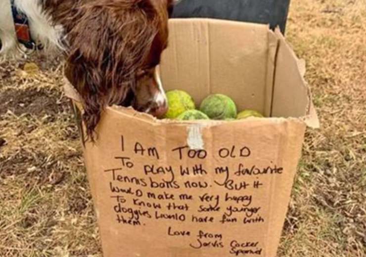 “Sono troppo vecchio per correre dietro alle palline”, così la dog sitter Jayley ha trovato scritto sulla scatola piena di palline lasciata nel parco. L’anziano cane sta curando la sua malattia e non sappiamo se potrà ritornare a giocare al parco ma, di certo, i più giovani gli saranno grati per tutta la vita.