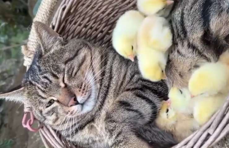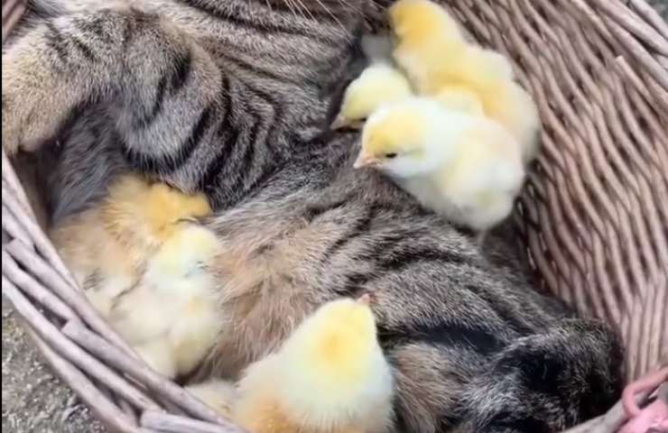 Il video rivelazione è stato pubblicato su Twitter dall’utente @AMAZlNGNATURE, il quale attraverso video di vario tipo pubblicati nel suo profilo, mostra come la natura e i suoi svariati animali siano incredibile in ogni cosa che fanno. Proprio tra di essi, spicca la clip che vede protagonista una gatta tigrata grigia diventata mamma di alcuni teneri pulcini indifesi.