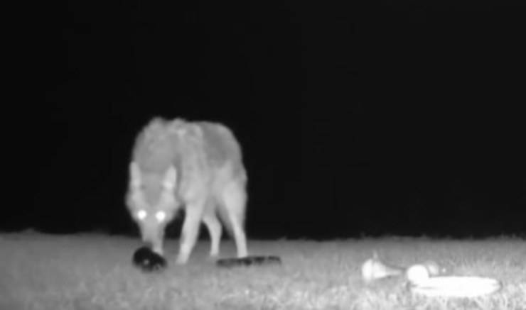Il coyote è colto sul fatto dalla telecamera a rubare i giocattoli del cane, il ladro però sembra divertirsi un po’ troppo – VIDEO.