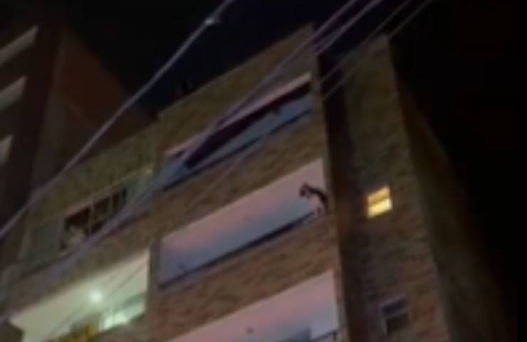 L’angosciante scena in un video di un cane che si sporge dal sesto piano di un edificio: il quattro zampe, spaventato e confuso, sta per cadere nel vuoto.