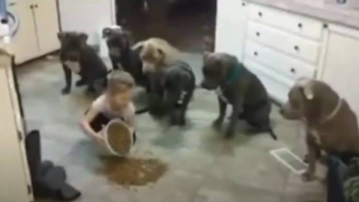 La scena è stata ripresa e pubblicata attraverso il canale YouTube, dove è diventato virale per la reazione dei sei pitbull. Il video si apre con i sei amici a quattro zampe che sono seduti obbedienti intorno alla bambina. Cosa aspettano? Che lei gli dia da mangiare. Hanno un vero comportamento esemplare, poiché mentre lei distribuisce il cibo i cani aspettano con molta pazienza.