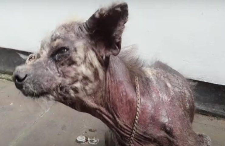 Il cagnolino era in pessime condizioni di salute completamente senza peli sul corpo e con le orecchie piene di scabbia il cucciolo era ridotto allo stremo delle forze tanto da far decretare al medico che l’unica soluzione fosse quella di addormentarlo per sempre.
