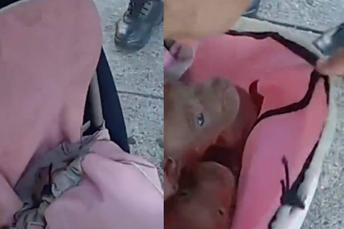 Nonostante all’inizio del filmato sembra che i cuccioli di cane che spuntano appena sacco siano soltanto 3, dopo l’intervento degli agenti di polizia si comprende facilmente la verità. Si trattava, infatti, di ben 6 piccoli Amstaff dal pelo grigio.