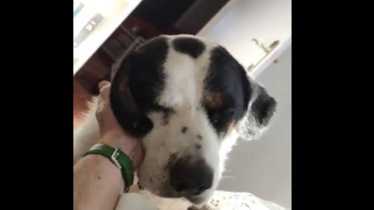 Lucky il cane colpito ad un occhio, ringrazia ogni giorno l’uomo che lo ha salvato -VIDEO