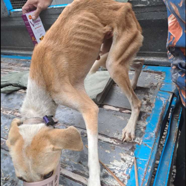 La storia di una povera cagnolina randagia che implorava aiuto con gli occhi: trovata in strada, era così magra da non riuscire a camminare.