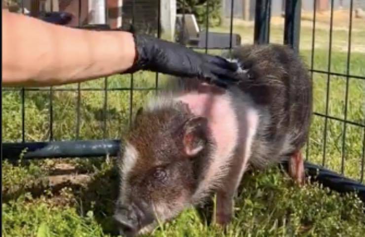 Sull’adozione del maialino salvato dalla proprietaria del santuario nel mese di aprile 2023, sono stati condivisi numerosi filmati – oltre a quello del suo recupero – in cui la donna mostra la trasformazione dell’esemplare prima, durante e dopo il momento dedicato al suo bagnetto, con tanto di apposito scrub.