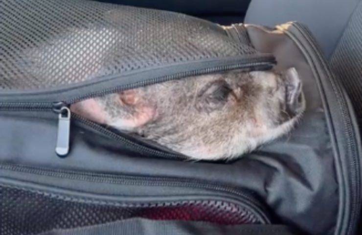 Avvicinarsi al maialino, per tal ragione, non era un’impresa semplice. Dopo quattro ore di tentativi, per guadagnare la sua fiducia senza forzare l’esemplare, la soccorritrice è riuscita a far sì che Cashew potesse fidarsi di lei. In quel momento ha preso in braccio il maialino e lo ha trasportato verso la macchina. Prima di azionare il motore ha rassicurato l’esemplare.