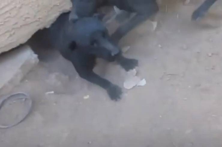 Mamma cane è disperata: chiede aiuto per poter salvare i suoi sei cuccioli, che sono intrappolati al di sotto di una casa, in un buco