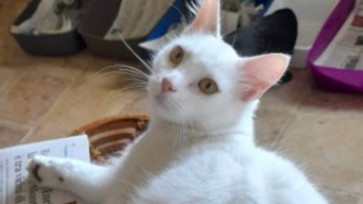 Ha solo 7 mesi il gattino Dante in cerca di una casa. Il pelosetto dal colore bianco splendente e gli occhi gialli, è un micio dolcissimo sempre in cerca di compagnia.