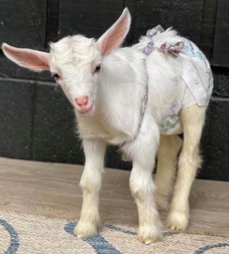 Questa dolcissima capretta è nata con una malformazione che le comporta avere il cuore non nel torace ma nel collo