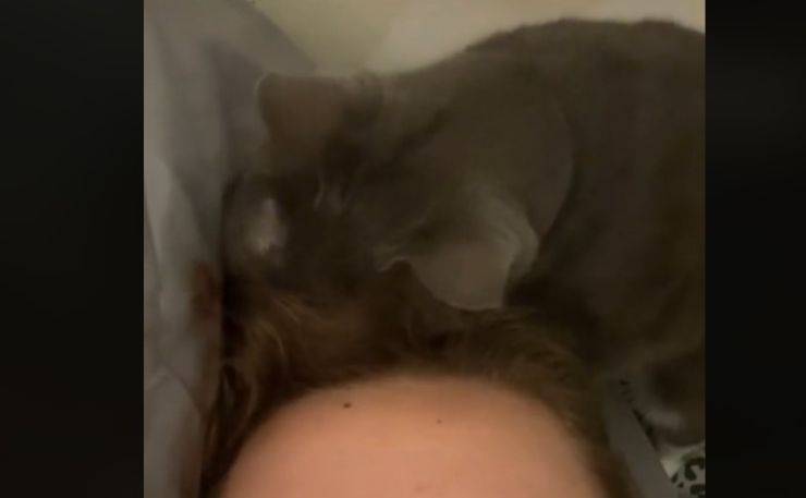 Nel video si vede Sierra sdraiata sul divano mentre il suo gatto dal pelo grigio le accarezza con cura la testa. Con cautela, l’animale rimane vicino, analizza e scompiglia i capelli della ragazza. Sierra trova tutto molto carino e perciò si mette a filmare l’atteggiamento apparentemente dolce dell’animale. Tuttavia, ad un certo punto, si scopre che il gatto inizia a leccare qualcosa e tutto il mistero viene svelato. Ad attirare l’attenzione dell’animale è stato uno scarafaggio che si trovava sotto la testa di Sierra.