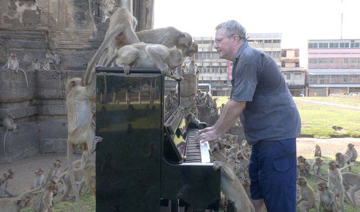 Sublime come la scena, anzi il vero e proprio spettacolo, messo in atto dall’artista e musicista Paul Barton. Quest’ultimo, da un periodo a questa parte, vive in Thailandia. E si diletta a suonare il piano, in maniera appunto sublime, per elefanti e macachi selvaggi, salvati da un vita difficile.