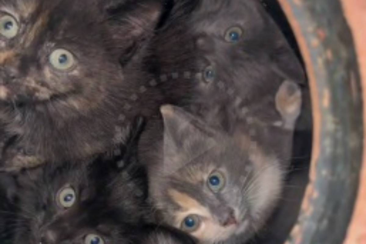 Quando prende il vaso per il manico, capisce subito che all’interno c’è qualcosa. Il vaso è stranamente pesante. Subito quegli occhietti vispi si fanno vedere. Ma i gattini sono tutti abbracciati tra di loro come per proteggersi l’un l’altro.