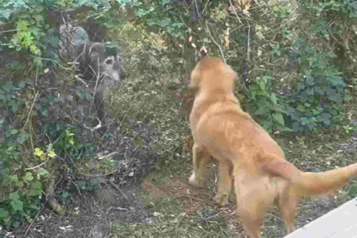 Nonostante le differenze di età i cani avevano stretto un legame speciale, una vera e propria amicizia che Caamp il cane degli Smith cercava di coltivare a modo suo. Per il cucciolo estremamente determinato non esistevano barriere sufficienti a fermarlo e con pazienza e dedizione continuava a rimuovere l’edera dalla rete per avvicinarsi sempre più al suo nuovo amico.