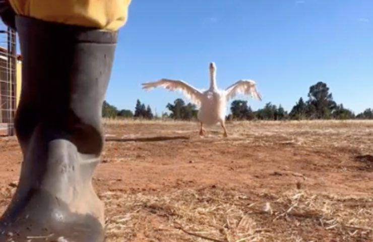 Oca spaventapasseri: Harriet in perenne corsa scaccia i nemici dalla fattoria – VIDEO